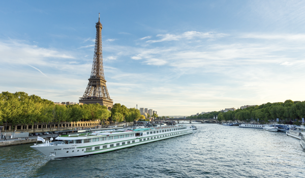 برج ايفل وسفينة الرحلات اليومية في نهر السين
